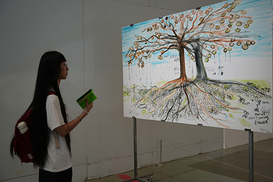 出发的时候有雨,到达后也还下雨。但是作为大聪明的我觉得不会下大,于是楞是没把雨伞随身携带就出门逛了。在地铁出站就开始淋雨,两个抠门鬼路过便利店都没舍得买伞,一直秃头狂奔到当代艺术馆。不曾想这雨越下越大,直到我们看完展它还处于倾盆状,无奈斥巨资在艺术馆买了把文创伞。两个抠门鬼顶着这把伞,相互嘲笑着回到酒店。这是一把有故事的伞,现在它躺在杭州的家里,偶尔会被惦记使用。