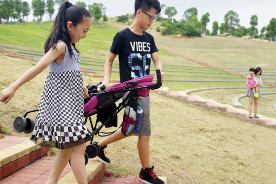 绕学校走,走,走......走不了就骑车......看看地上的花草,看看头顶的树。